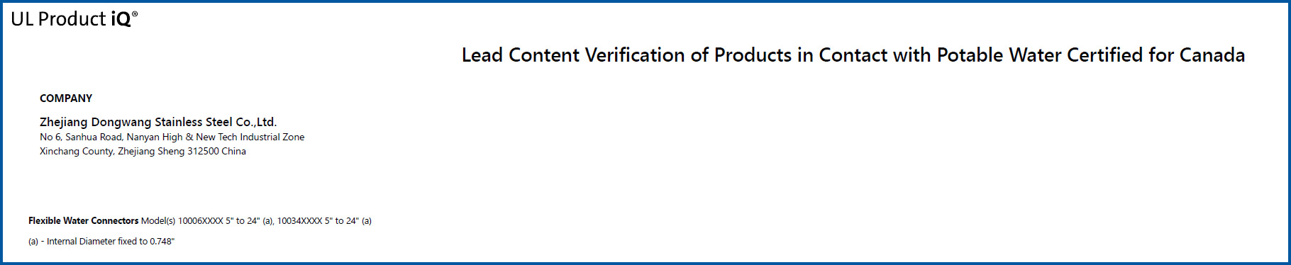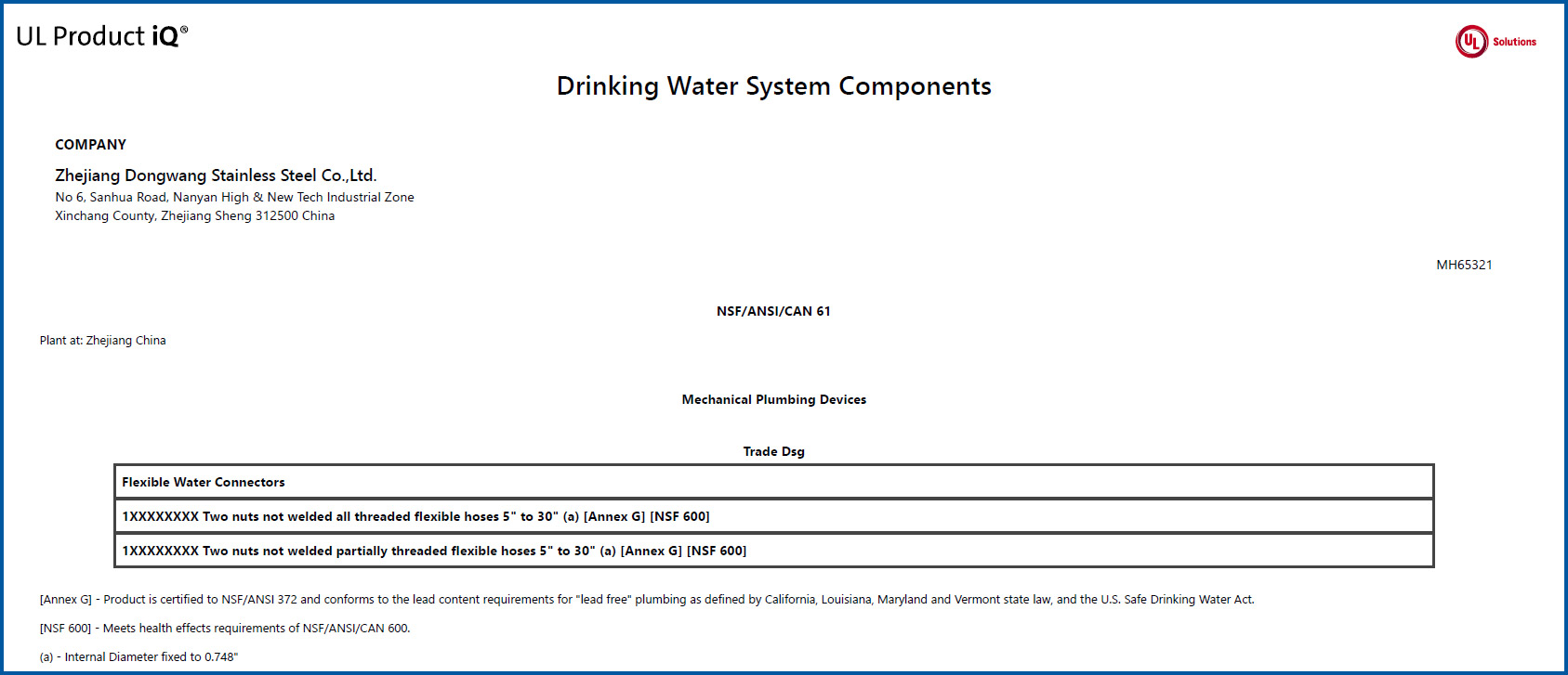 饮用水涉水认证/无铅认证(NSF61 /NSF372):