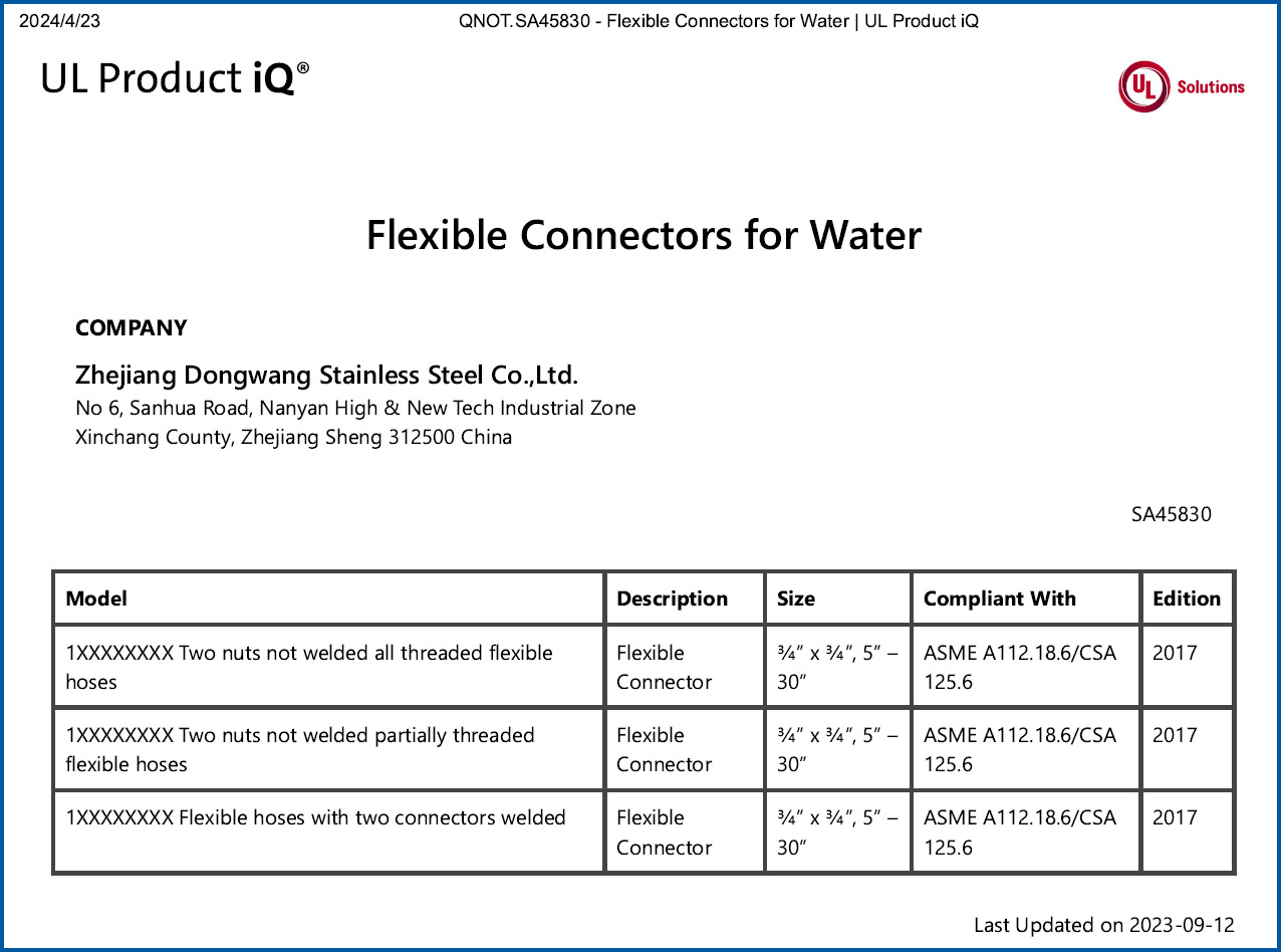 供水系统软管(UL):